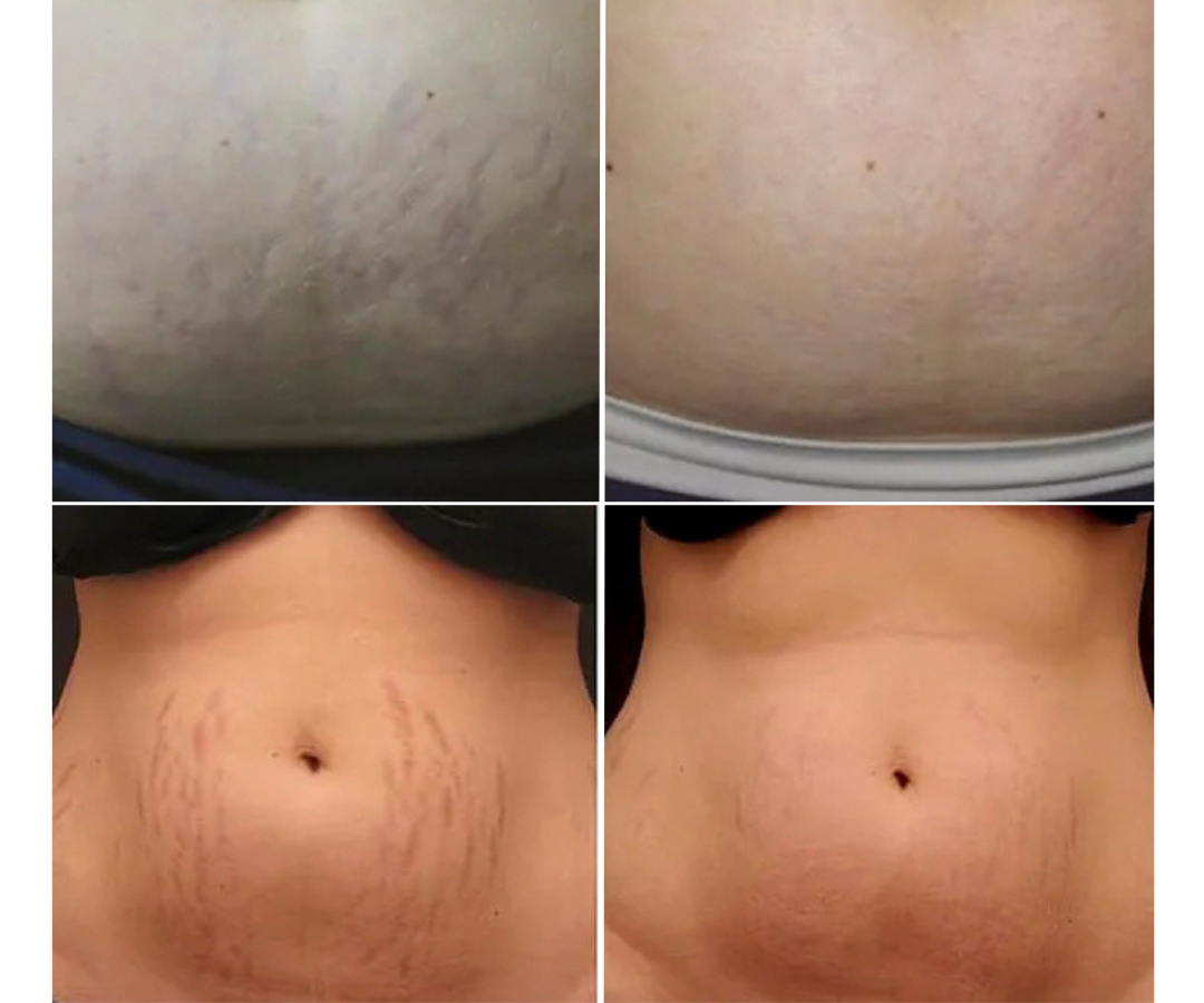Cicatrices et vergetures, hyperpigmentation, grains de milium.